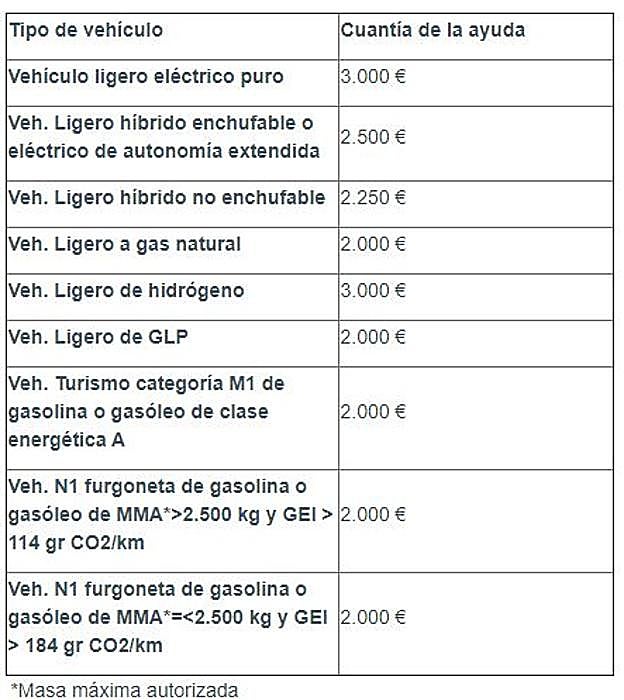 Ayudas por vehículo nuevo o Km 0 que cumpla condiciones: