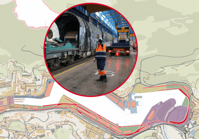 El día va avanzando. Pasan las horas y aparece en escena otro de los grandes protagonistas: el tren. Y es que una de las grandes ventajas de Pasaia -por la agilidad y versatilidad que ofrece frente- es su ligazón con el ferrocarril, que sirve para llevar hasta allí los miles de coches que cada año salen después hacia Reino Unido y Bélgica, procedentes en su mayoría de la planta de Figueruelas y también de Mercedes Vitoria, y para que las bobinas de acero salgan de la dársena pasaitarra tierra adentro. Solo la siderometalurgia mueve dos millones de toneladas.