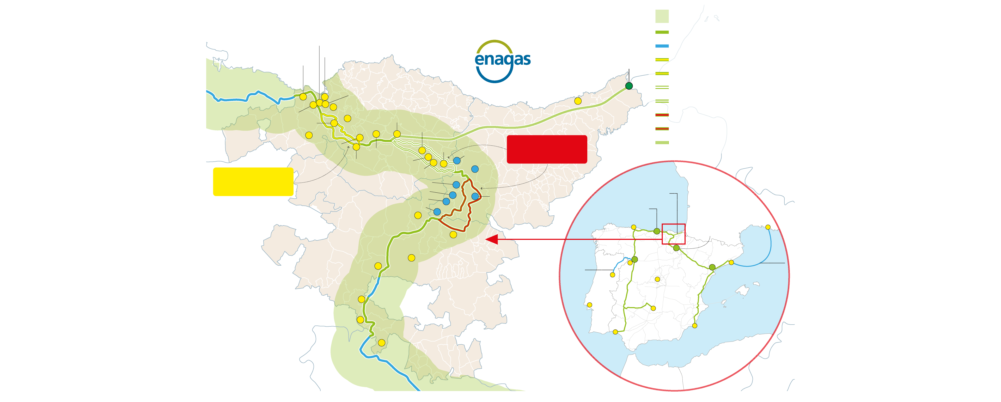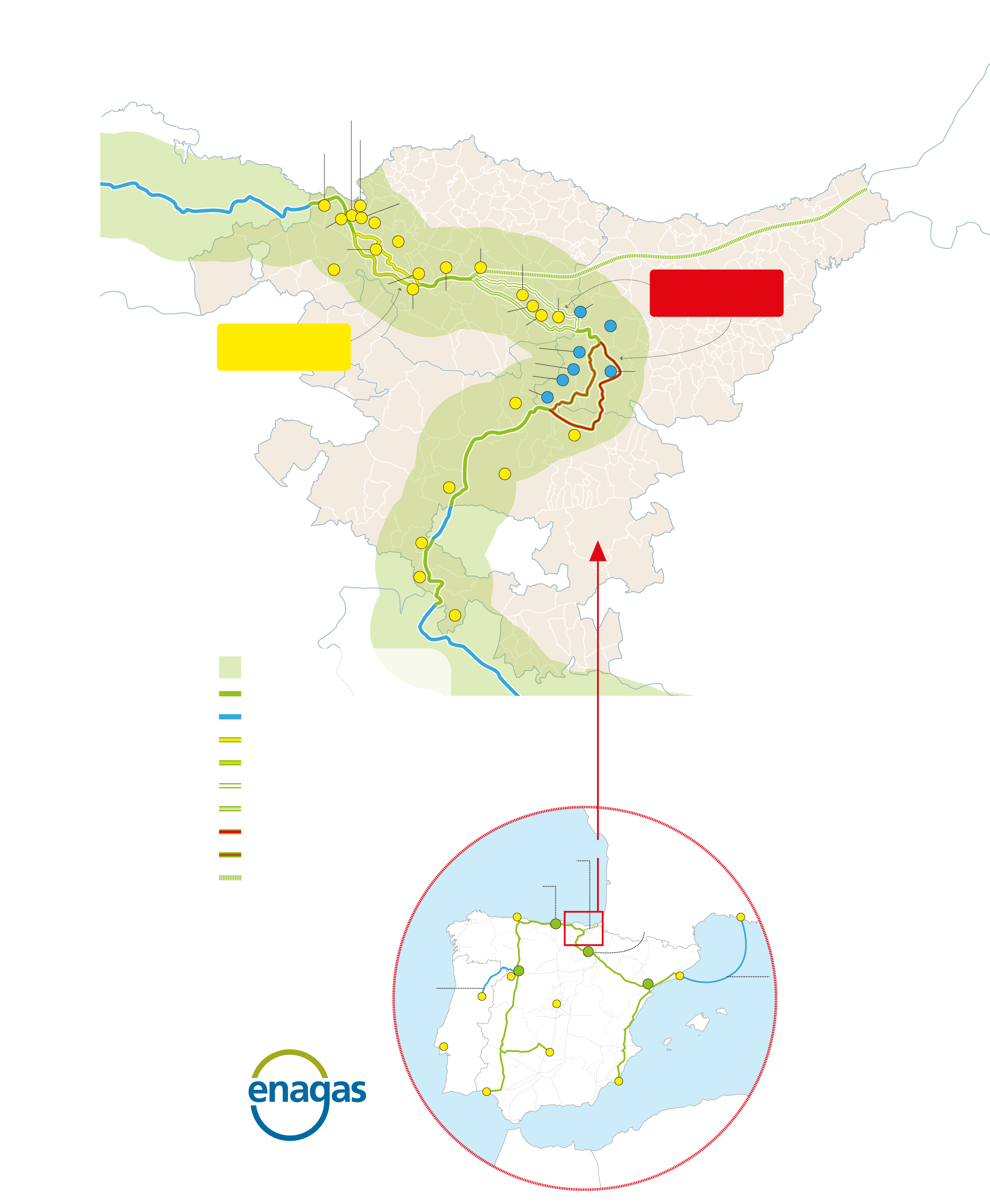 Bruselas quiere sustituir el gas natural por el hidrógeno verde a partir de 2030 e inyectará 2.000 millones a España para este plan. Para ello, Enagás impulsará una infraestructura de 2.600 kilómetros que nace en el sur de España y atravesará trece comunidades autónomas -entre ellas Euskadi en 163 kilómetros- en su posterior recorrido hacia Europa a través de Aragón y Cataluña. La infraestructura, en la que Euskadi invertirá 400 millones, estará lista para 2030 y cruzará desde Elgeta hasta Leintz-Gatzaga.
