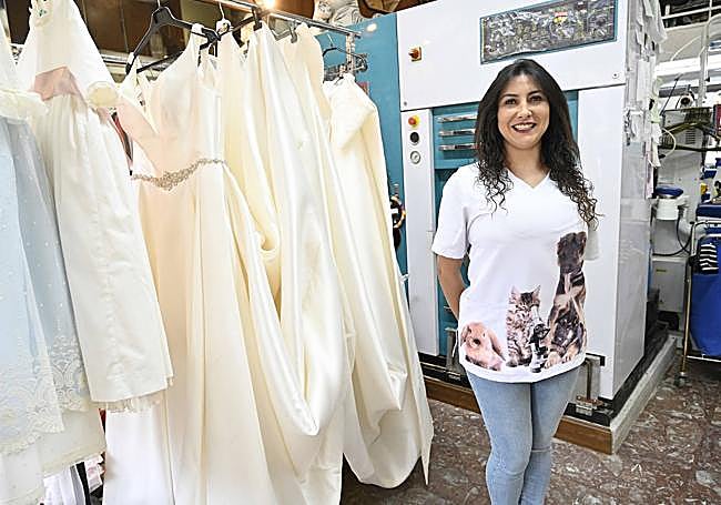 Luisa muestra orgullosa los vestidos de novia y de primera comunión de cuya limpieza es la encargada y que lucen justo en la entrada de la Tintorería Estrada. A renglón seguido se traslada a los mandos del ordenador que controla el sistema de facturación del comercio (del que también es la 'experta') para mostrar cómo funciona el TicketBai.