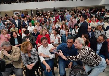 Ya entrado en harina, ha repasado su reciente visita por Oriente Medio para volver a pedir la «paz» y defender la creación de un Estado palestino. También ha destacado los logros económicos del Gobierno de coalición y en lo referido a Euskadi ha pedido «votar al que decide» y se ha citado con Eneko Andueza el próximo día 22 de abril: «Tú como lehendakari y yo como presidente del Gobierno».