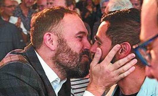 El beso cómplice de Denis y Luis, el día que presentó su candidatura