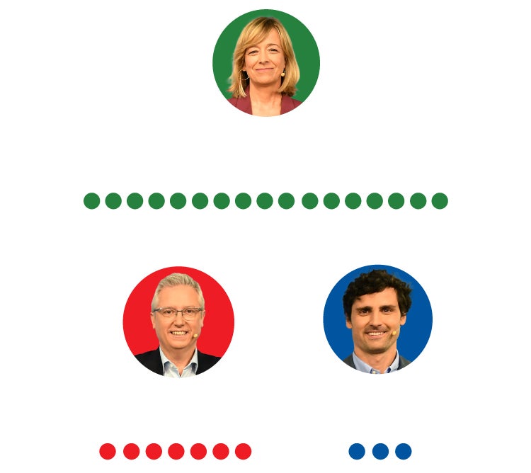 La llave en este caso la tendrían el PP o Elkarrekin Podemos. La formación liderada por Mikel Lezama fue otra de las ganadoras de la noche, logrando tres junteros, dos más que en 2019. La combinación PNV-PSE-PP alcanzaría los 27 escaños, y los populares parecen dispuestos a tender su mano. «Apoyaremos siempre todo lo que sea bueno por y para Gipuzkoa y los guipuzcoanos. Sin ningún tipo de mochila, con absoluta libertad», apuntó Lezama en el debate foral organizado en Diariovasco.com.