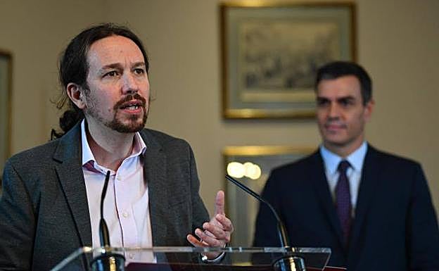 Pedro Sánchez y Pablo Iglesias, tras la firma del preacuerdo. EP