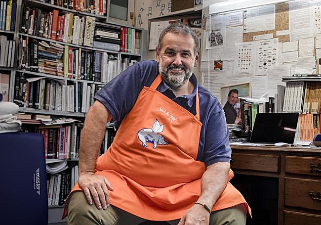 Recibe el Premio Nacional de Gastronomía a la Comunicación, que concede la Real Academia de Gastronomía española, «con alegría, claro, pero sobre todo al ver cómo lo celebran las personas que quiero». David de Jorge (Hondarribia, 55 años) ha sido distinguido como divulgador y comunicador, pero él se sigue reivindicando como cocinero. Agitador en 'El hormiguero', iconoclasta en sus crónicas en El Diario Vasco y capaz de cantar a voz en grito con los oyentes en su sección del programa de Alsina en Onda Cero, De Jorge es en el fondo un gran tímido que disfruta leyendo a Baroja en casa o escuchando un disco de jazz.