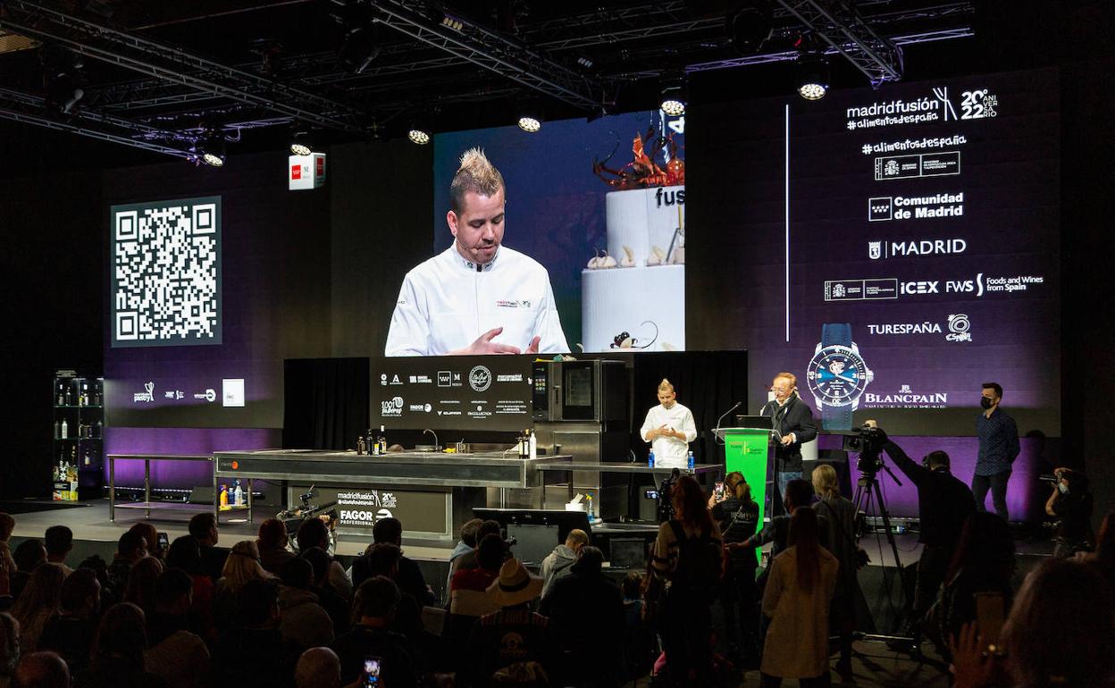 A lo largo de tres días, el pabellón 14 de Ifema ha sido un hervidero de cocineros, sumilleres, productores, distribuidores o gastrónomos, que por momentos han dejado pequeño el auditorio del congreso. El menú resultaba de lo más apetecible y ha dejado momentos memorables que quedarán para los anales de Madrid Fusión. Como el multitudinario encuentro de chefs para soplar las velas del cumpleaños del congreso, el diálogo entre dos de los cocineros más influyentes del siglo XXI, René Redzepi y Andoni Luis Aduriz, la entrevista del público a Dabiz Muñoz, la reflexión en torno al oficio de Ricard Camarena o el triunfo de su discípulo Pedro Aguilera en el premio Cocinero Revelación.