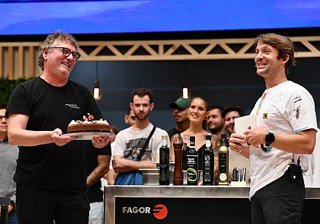 6. Redzepi, con una camiseta dibujada por su hijo, rendido ante Aduriz, el cocinero que parece danés pero es de Egia/egia (del barrio y de verdad).