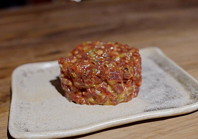 Ingredientes y elaboración del steak tartar de lomo bajo que Imanol Iraola (Casa Julián) prepara con producto de Cárnicas Goya