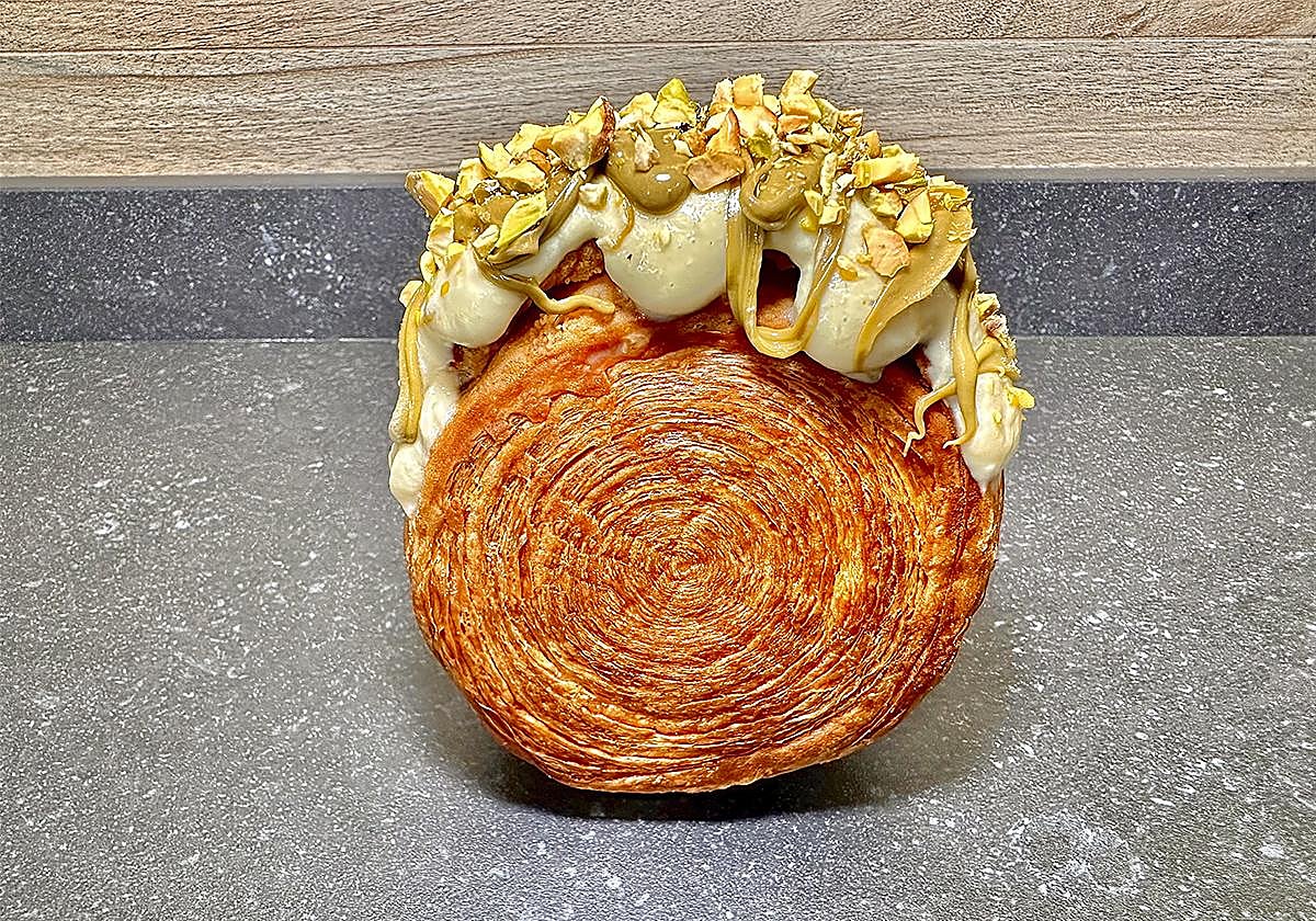 A continuación los 4 pasos para la preparación del new york roll de pistacho