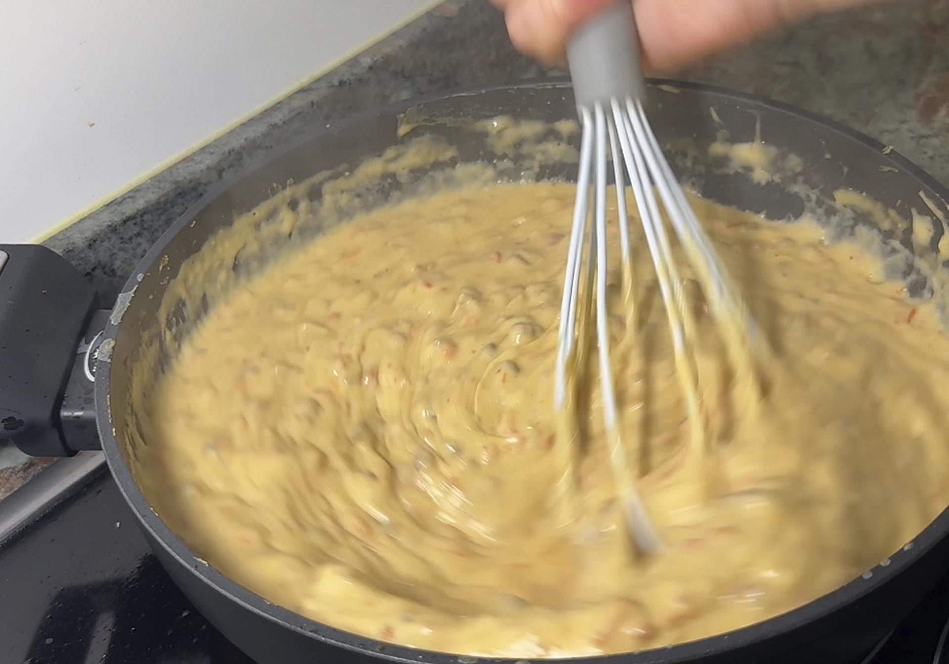 Añade la harina e integra formando la roux. Cocínalo bien, para que la harina no sepa a crudo.