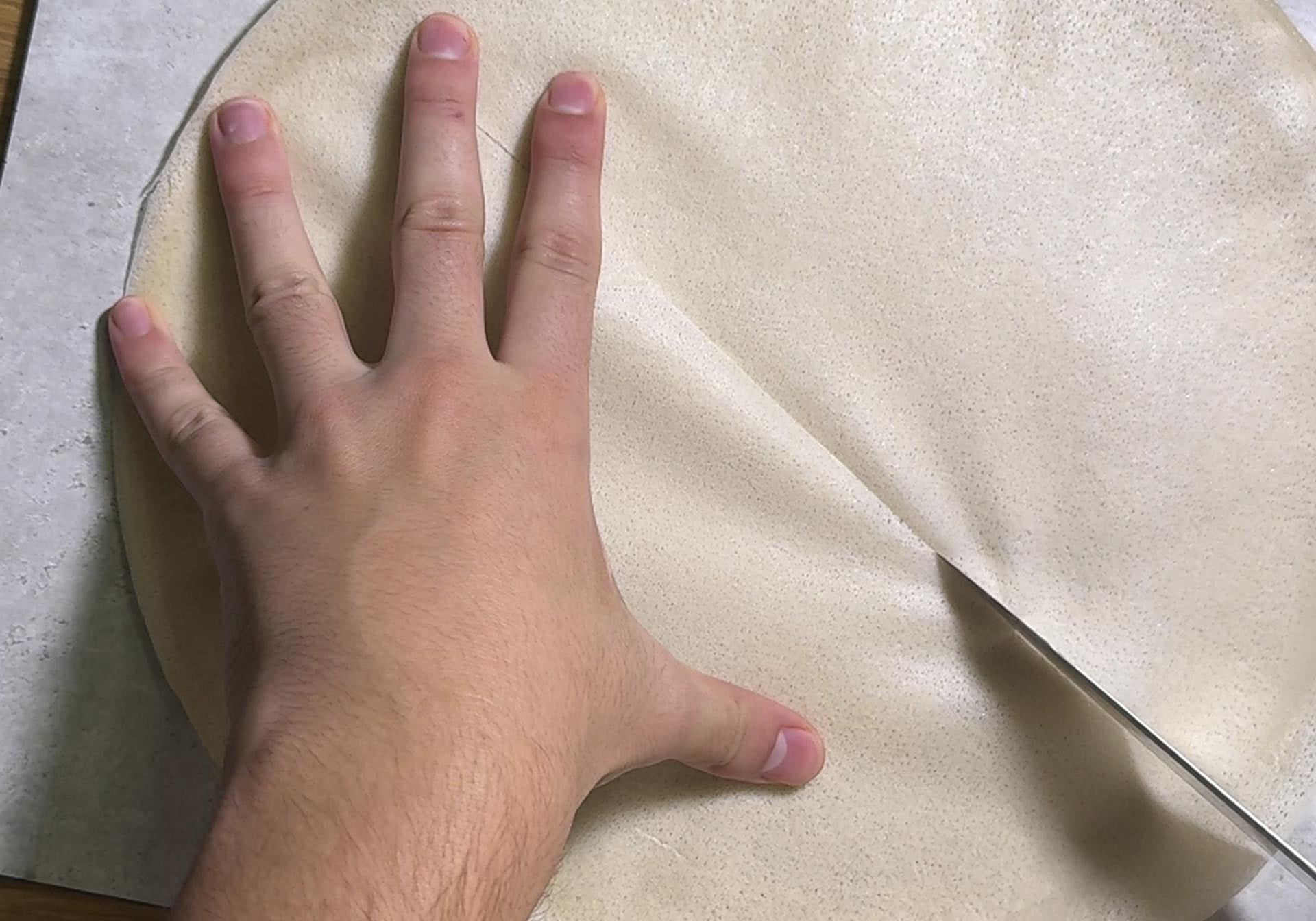 Corta las láminas de masa en 4, formando así trozos con forma «triangular».