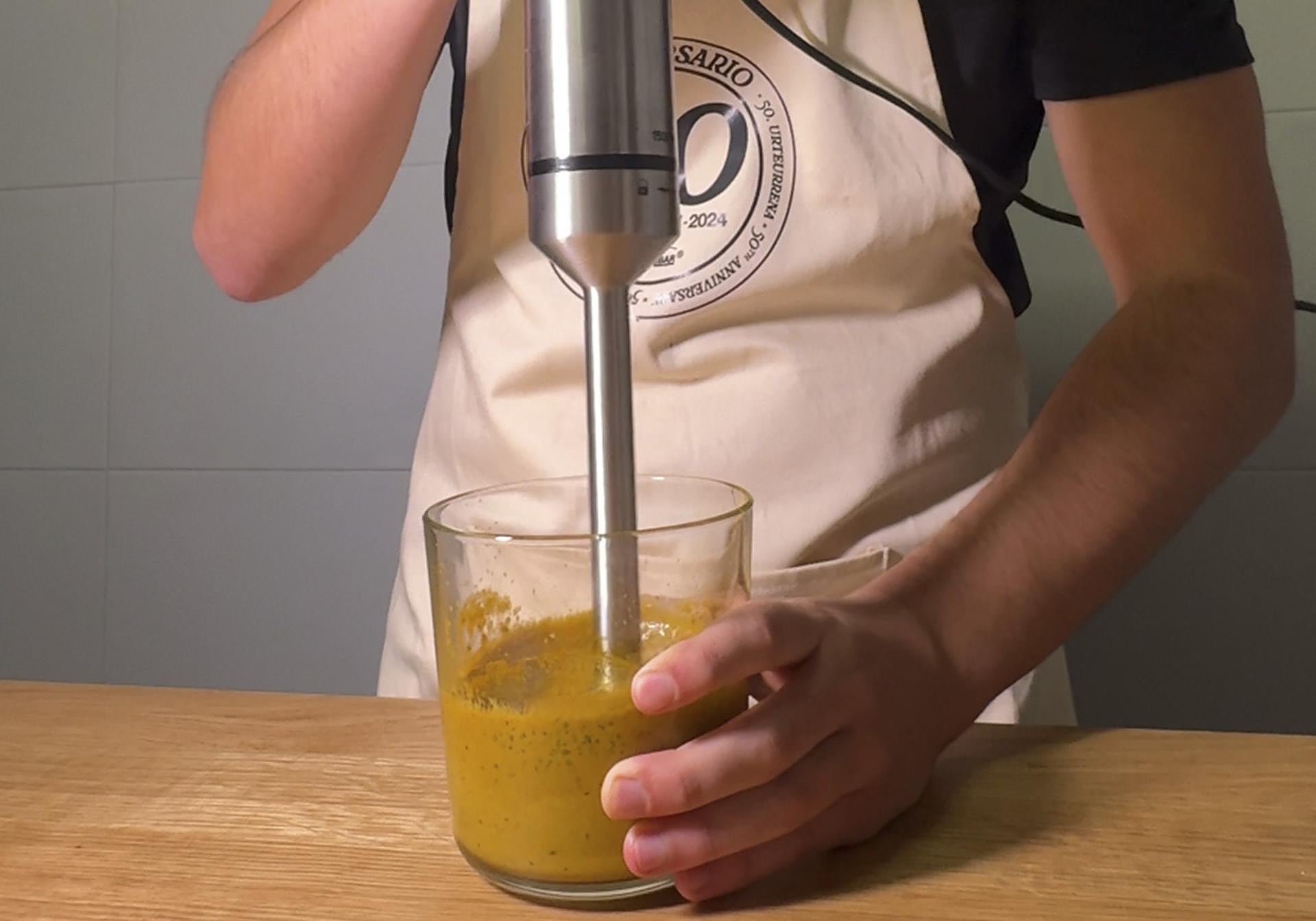 Mezcla cebolla, ajos, perejil y todas las especial con el aceite y tritura hasta conseguir un mejunje de color anaranjado/marrón claro. Importante que no queden grumos