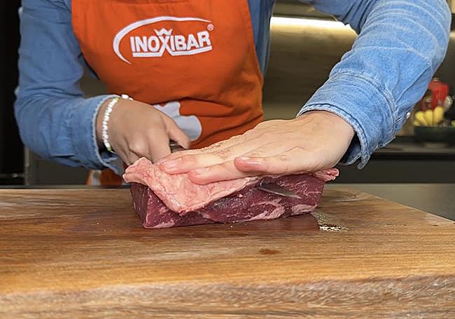 A continuación los 4 pasos para la preparación de tataki de vaca con cogollos