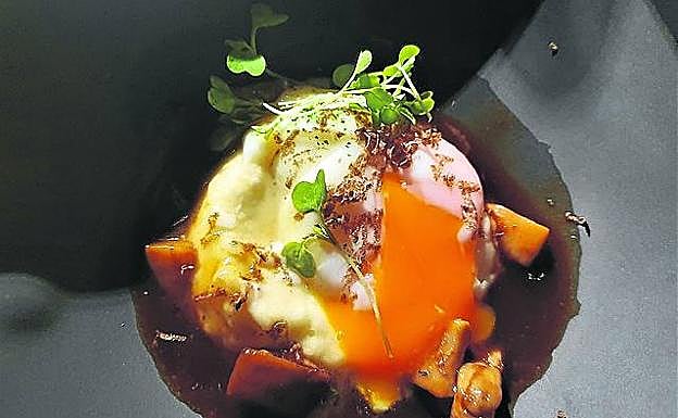 A partir de ahí la comida fue in crescendo. Tras el tataki, los huevos escalfados, guiso de setas y puré de patata. Un huevo cocinado a baja temperatura, que venía acompañado de unos maravillosos hongos. David me comentó que la temporada está siendo muy buena, y en el fondo una parmentier de patata bien cocinada, con cariño y paciencia. Una mezcla en la que había que saborear cada bocado con tranquilidad, suavemente. Pero que venía mojado con un fondo de jugo de carne de otra galaxia. Recuerdo que fue probar una pequeña cucharada del jugo y pensar: «¡Madre mía, esto que maravilla gastronómica es!». Un lujo para nuestro paladar.