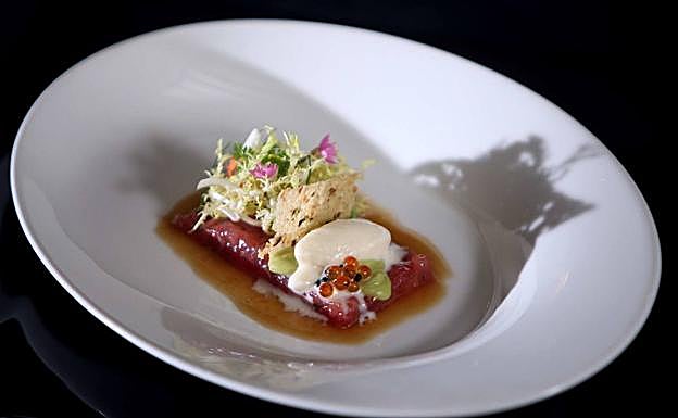 De nuevo un edificio de Frank Gehry, pero en esta ocasión surgido en medio de los viñedos de la localidad alavesa. Y de nuevo, altísima cocina a cargo de un chef, Francis Paniego, que traduce en sabor la cultura de una comarca ligada al vino. Paniego, alumno aventajado de los conocimientos que se imparten en Echaurren (Ezcaray, dos estrellas Michelin), forma a su vera a los jefes de cocina que interpretan en Elciego el recetario clásico aderazado de los imprescindibles toque de modernidad. En este caso, de la mano de la joven Silvia García, protagoniza una evolución culinaria constante basada en la innovación y excelencia.