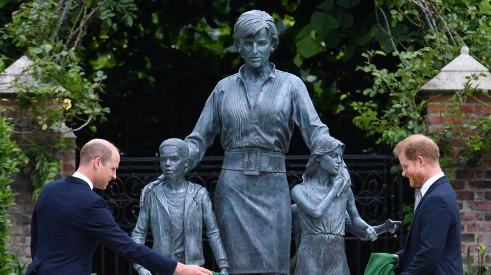 Los príncipes Guillermo y Enrique desvelan una estatua cerca del palacio de Kensington en honor a su madre, Diana de Gales