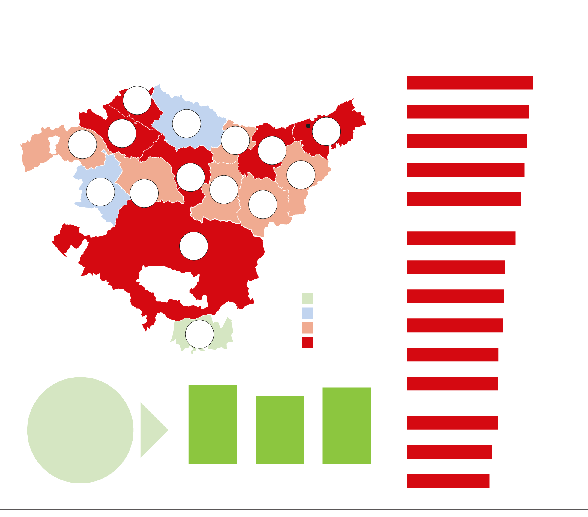 En el segundo, cuando se produzca cambio de arrendatario, a los grandes fondos se les obligaría a situar el precio, incluso rebajándolo si fuera necesario, hasta el tope que se establezca, mientras los pequeños propietarios no podrían subir la cuota respecto al contrato anterior, salvo que realicen obras de mejora en el piso, lo que les permitiría aumentarla hasta un 10%. El Gobierno Vasco no ve con malos ojos el proyecto de ley estatal, que en otros aspectos bebe de la normativa vasca de 2015, si bien está a la espera de ver cómo queda concretado lo relativo a las zonas tensionadas y los topes a los alquileres para determinar si impulsa estas limitaciones en Euskadi. Ahora no puede hacerlo, pues esa limitación chocaría con normativa básica estatal, como la Ley de Arrendamientos Urbanos, por lo que solo otra ley de rango nacional como la que está en trámite da cobijo a la intromisión pública en los precios de los alquileres.
