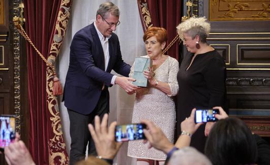 Charo Martínez recibió ayer el Premio del Voluntariado de 2019 de la Diputación de la mano del diputado general Markel Olano y la diputada de Políticas Sociales, Maite Peña. Esta donostiarra de 68 años cumple 25 como voluntaria en diferentes asociaciones. Su candidatura fue presentada por la asociación intercultural Kaebnai y el acto se celebró en el Salón del Trono del Palacio Foral.