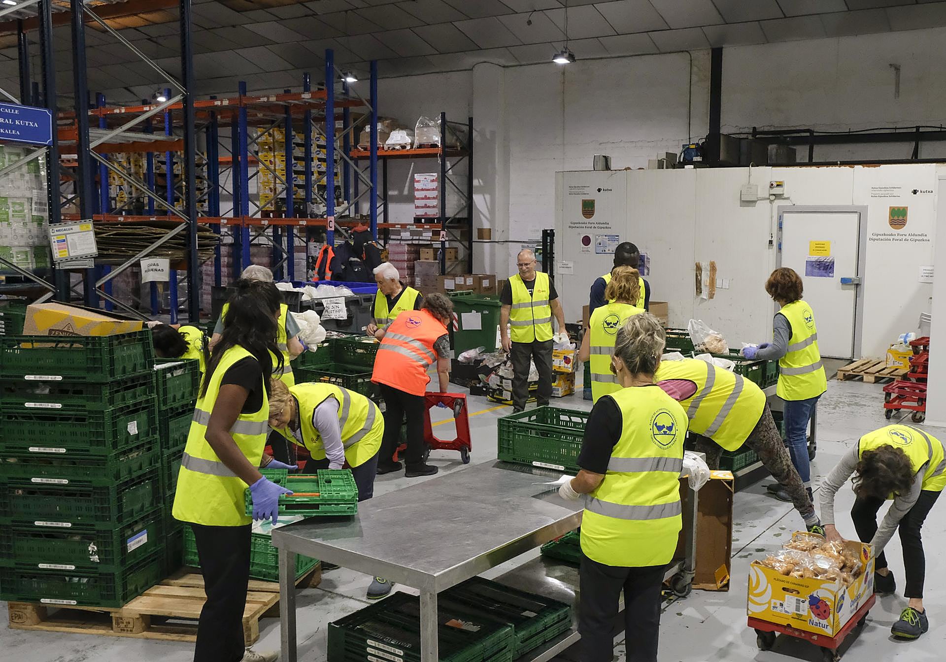 Los 180 voluntarios que colaboran con la organización describen un día a día lleno de esfuerzo y compromiso. Los turnos se reparten. Lourdes y Mila van los martes, pero el trabajo es constante. A estas dos mujeres, ambas jubiladas, les «llena» saber que cada día que acuden al almacén aportan un granito de arena en ayudar a los más necesitados. Al igual que ellas, el perfil mayoritario de los voluntarios es de jubilados, aunque este año se ha sumado la colaboración de jóvenes a través de Mondragon Unibertsitatea, que aporta «energía» para la próxima recolecta.