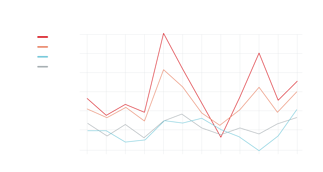 Cambio porcentual por mes de la demanda turística promedio hasta la década 2091-2100 en comparación con el periodo 2024-2030 en el escenario RCP 8.5