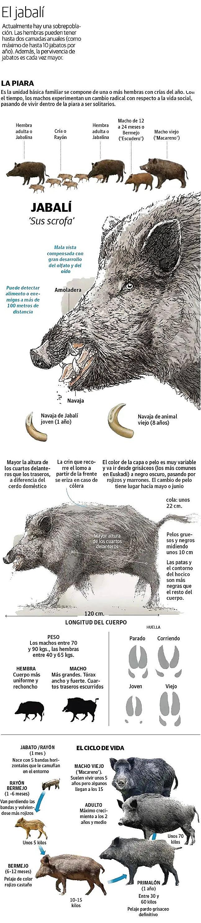Este aumento de la población de jabalíes, prevé Eceiza, será más pronunciado a partir de marzo, cuando inician su época de reproducción. «Cada jabalí tiene cinco o seis crías y estas van creciendo a lo largo del verano. Esto supone un importante aumento de ejemplares en apenas unos meses».