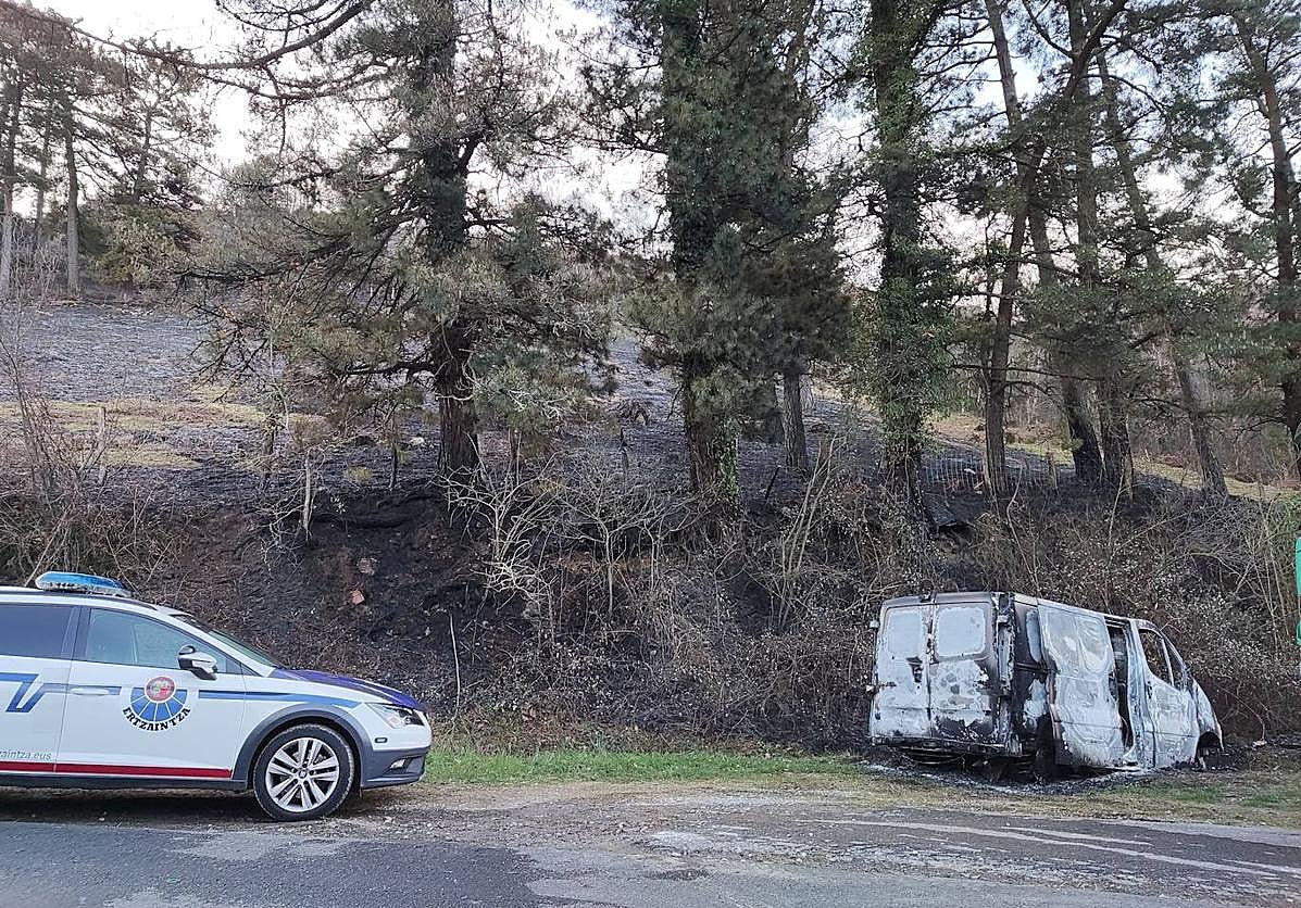 Una furgoneta coge fuego en Oiartzun y se queman dos hectáreas de un bosque colindante