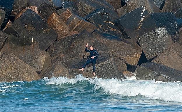 Los bomberos rescatan a un surfista polaco en el espigón de La Zurriola