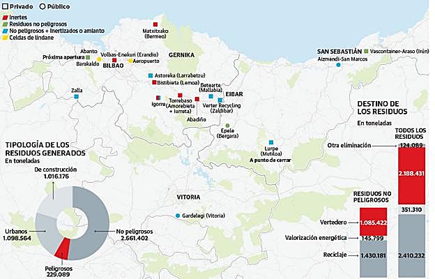 Tras la reunión habitual de la mesa de crisis, el secretario general de Presidencia, Jesús Peña, ha explicado que «se está trabajando ya en un plan de ubicación» de los residuos a más largo plazo. Qué hacer con todo este material es uno de los retos a los que se enfrenta el Gobierno Vasco, ya que no hay vertederos autorizados para residuos peligrosos en Euskadi. Según ha expuesto, y por lo que ha podido saber tras las diversas reuniones en las que se ha tratado el tema, «se va a intentar que se muevan lo menos posible» buscando un alojamiento temporal o «definitivo mediante sellado definitivo o otras técnicas » en el mismo entorno. Un proceso que llevará más de seis meses de trabajo, según los expertos consultados por este periódico.