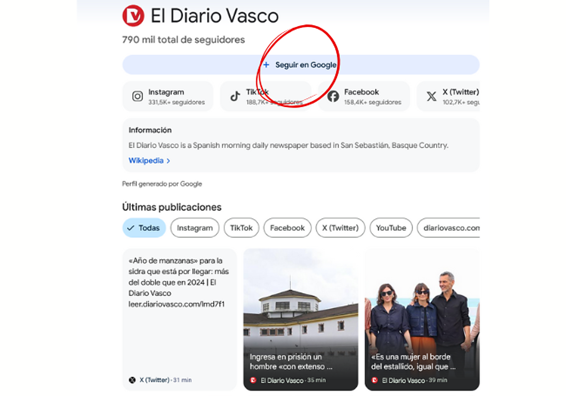 La forma de no perderse nada de El Diario Vasco en Google Discover