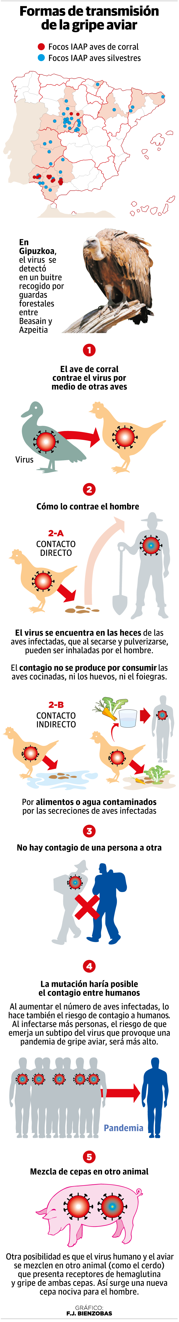 «Esta detección ha sido posible gracias a la vigilancia que se viene desarrollando en los últimos meses tras la declaración de casos en Francia», señalan desde el ente foral. Dicha vigilancia se ha intensificado ahora en todo Euskadi, con especial incidencia en zonas de mayor riesgo como humedales y otras áreas de concentración de aves.