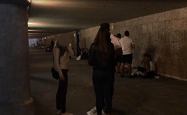 Llegan a los relojes y el vocerío se hace cada vez más fuerte. Bajan por la cuesta que termina en los voladizos e inspeccionan el botellón. Prestan especial atención a que no haya menores. Piden el documento nacional de identidad a dos chicas y como son mayores de edad desde hace un mes les dejan seguir. «A los mayores de edad se les deja hacer botellón siempre y cuando no estén generando molestia. La cosa cambia si son menores. A estos se les identifica, se les retira el material y se informa a los padres», explica Iker. Recorren los doscientos metros y suben por las escaleras más cercanas a la Perla.