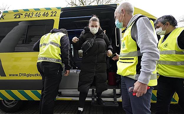 Misión cumplida. Pasadas las 12 del mediodía de ayer, el convoy de DYA Gipuzkoa en el que ha viajado DV llegaba a Donostia con los 17 ucranianos evacuados de la guerra a bordo. Cansados del largo viaje —unos 3.000 kilómetros aproximadamente— pero con la esperanza de poder comenzar una nueva vida lejos de las bombas y el horror vividos durante los últimos días, el grupo de refugiados, todas mujeres a excepción de algún niño y un joven de 23 años, Ivan, uno de aquellos niños de Chernóbil que creció durante varios veranos en el territorio, fueron recibidos por familias de acogida y voluntarios de la organización, que les hicieron entrega de un pequeño obsequio en forma de fotografía en un coqueto cuadro y un peluche para los niños.