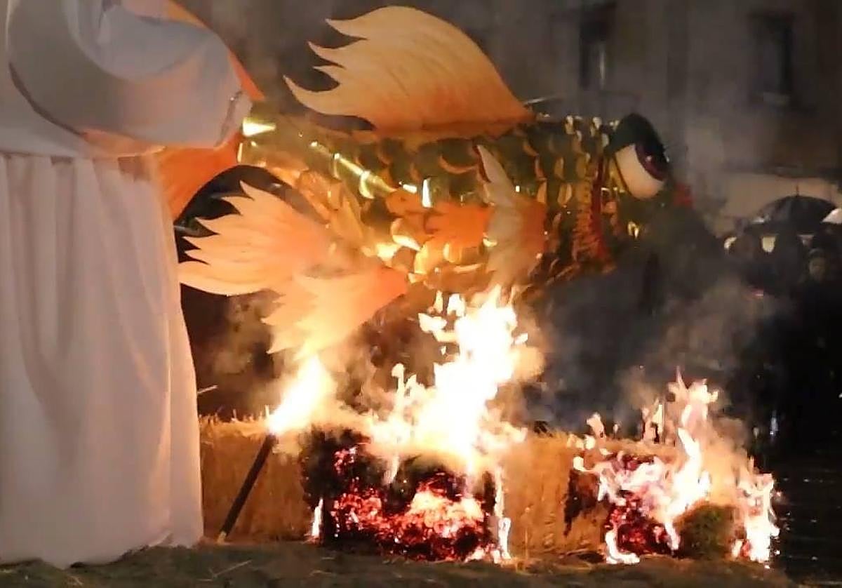 Santiagoko Deabruak kultur elkarteak sardinaren ehorzketan parte hartzen du bere su artifizial taldearen bidez