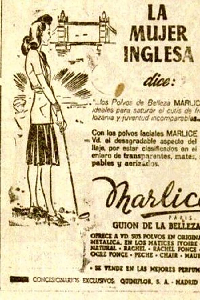 No sabemos quién era aquella mujer inglesa que recomendaba polvos de belleza, ni por qué su criterio era más digno que atender que el de una mujer vasca. Eso sí, la ilustración dejaba claro su carácter británico sumando dos tópicos: jugaba al golf y estaba junto al puente de la torre de Londres.