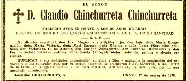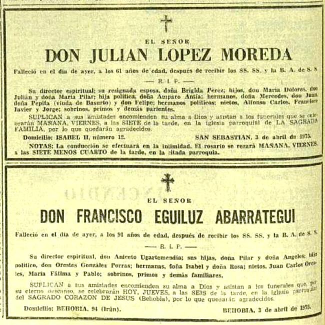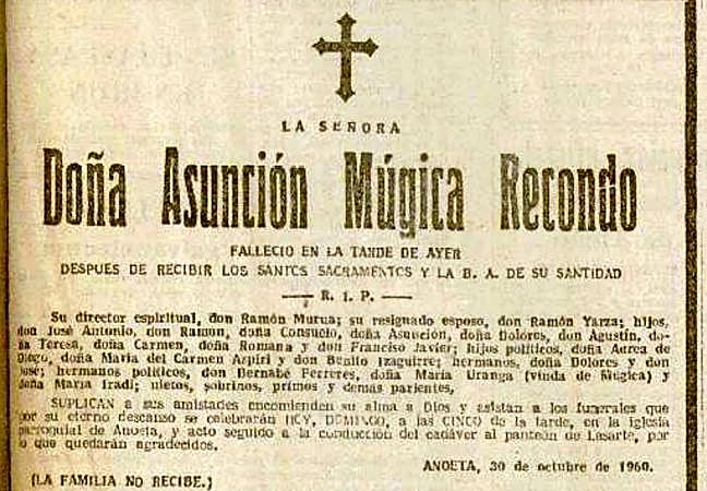 Antaño se usaban frecuentemente expresiones como «su atribulado esposo» o «su resignada esposa», ahora casi desaparecidas. Más raro era referirse al domicilio donde se velaba el cadáver como «casa mortuoria». ¿Y se han fijado en otro cambio? Sí, la hora del funeral. Antaño se celebraban por la mañana (en este caso de Eibar, a las 10:30 de un miércoles) y paulatinamente se generalizó el horario vespertino.