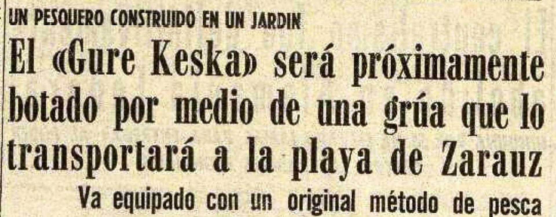 Aquel pesquero de bajura se hice «de acuerdo al original método diseñado por el inventor oriotarra don Ignacio Sarasúa, quien ha dirigido personalmente, en el improvisado astillero de los jardines de 'Aguilapuente', su construcción», escribieron.