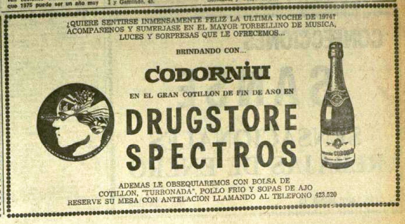 Han leído bien la promesa: «¿Quiere sentirse inmensamente feliz la última noche de 1974?». El Drugstore marcaría una época en la noche donostiarra, aunque la discoteca más deseada ya era la antes mencionada Ku de Igeldo…