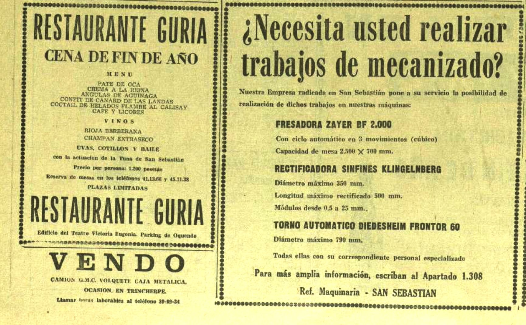 Costaba 1.200 pesetas cenar en Nochevieja en el desaparecido restaurante Guria. Eso sí, la comida estaríariquísima pero había que aguantar la aparición de una tuna.