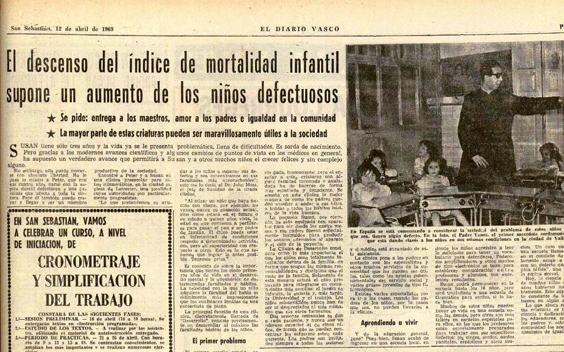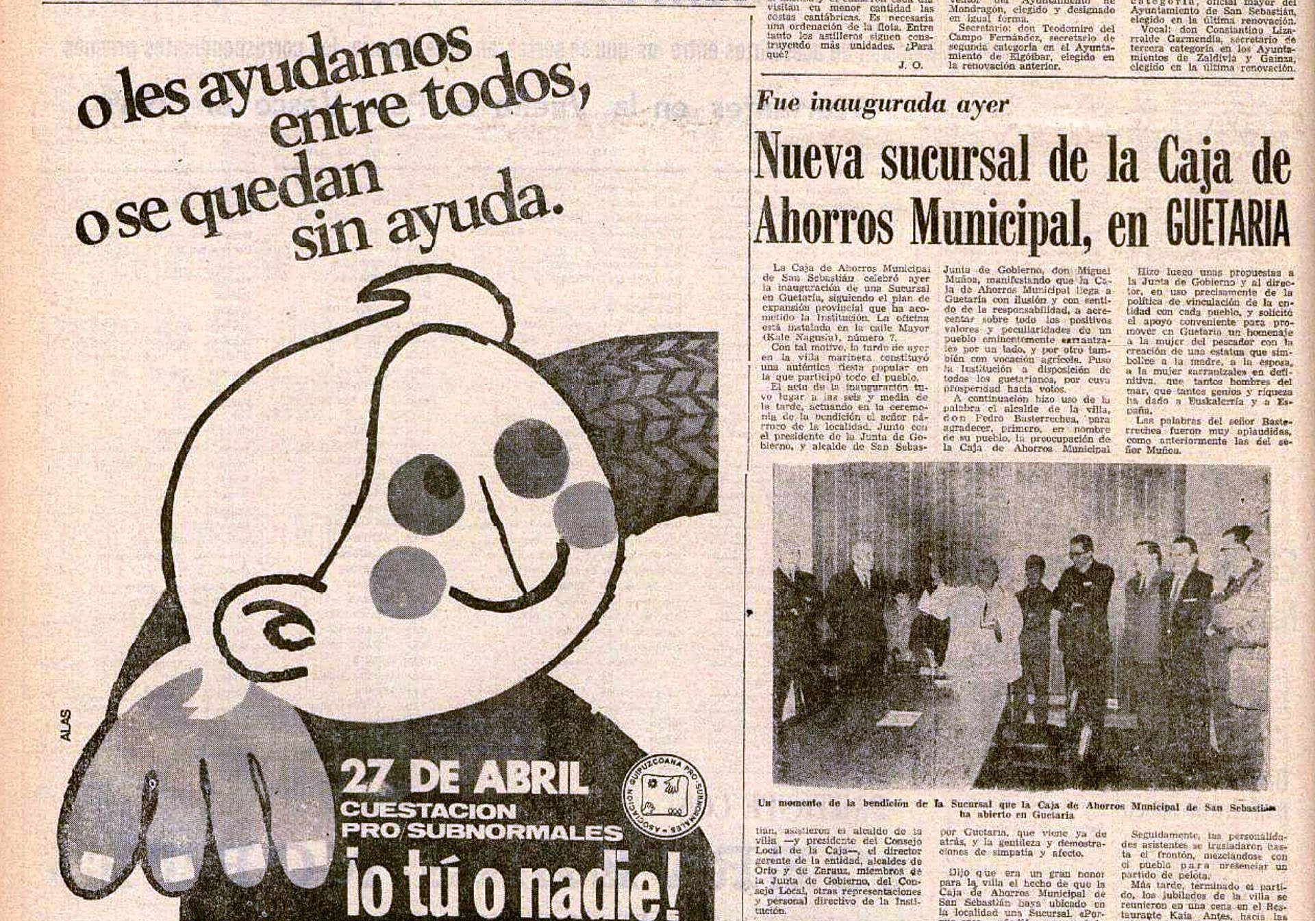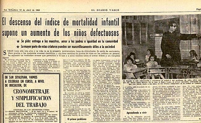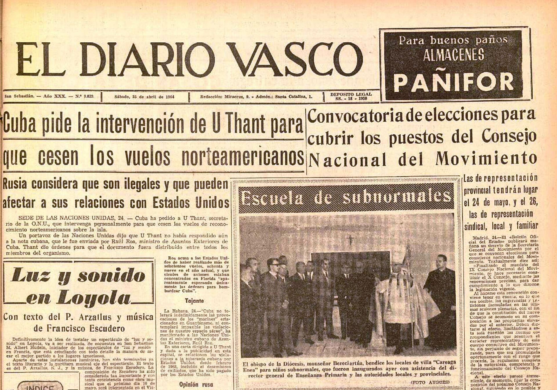 Ahora nos llama la atención la tranquilidad con que hace seis décadas se hablaba de subnormales, sin percatarse del matiz negativo que aportaba la etimología de la palabra. Era de uso común y a nadie le extrañaba encontrar en la primera página de EL DIARIO VASCO el 25 de abril de 1964 la referencia a la apertura de una 'Escuela de subnormales'…