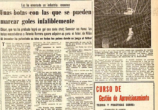 El señor Quílez, alicantino y autor del invento, aseguraba que sus botas corregían los desvíos en los disparos a portería. Después de muchas pruebas, «hoy ya puedo asegurar que lo de echar los balones fuera, cuando se chuta a la portería, está corregido. Que las botas son maravillosas, que los disparos van todos a puerta y, además, se chuta con más potencia».