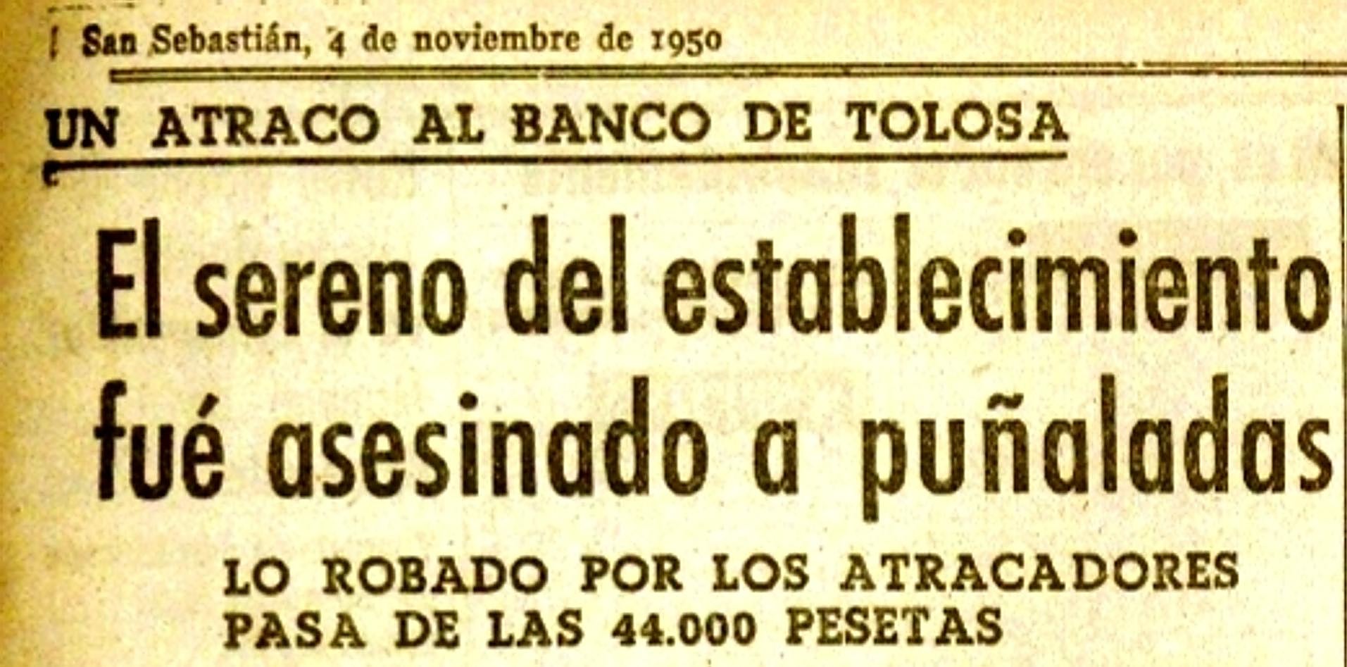 Mataron al vigilante del Banco de Tolosa para robar 44.000 pesetas