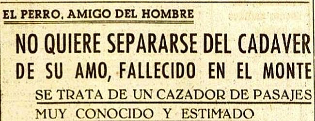 «En aquel momento se produjo una escena dramática que produjo gran impresión a cuantos la presenciaron. El perro que se había quedado con el cazador muerto no dejaba que nadie se acercara al cadáver de su amo. Incluso al amigo, bien conocido de él, se le oponía amenazador».