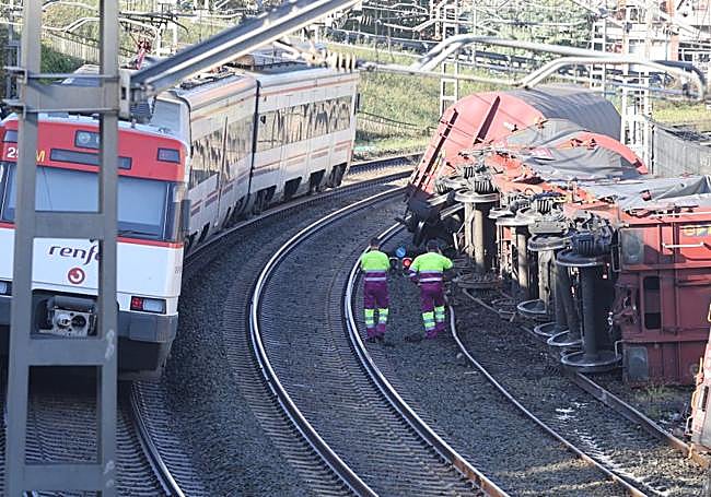 El descarrilamiento de un tren a primera hora de la mañana en Pasaia fue el centro de atención para vecinos y paseantes de la ... zona durante toda la jornada del lunes. La noticia del accidente corrió como la pólvora entre los pasaitarras y muchos se acercaron hasta el lugar para ver el tren descarrilado. La rotonda que une la zona de Kaputxinos con Pasaia se convirtió en una atalaya improvisada para los curiosos que se acercaron hasta allí para ver el convoy. «Menos mal que no transportaba material tóxico», relataba una señora que recorría la zona junto a una amiga y se acercó al enterarse de la noticia. «Es una curva un tanto cerrada y el tren es muy largo, tal vez los últimos vagones han volcado por la inercia al girar», señalaba otra.