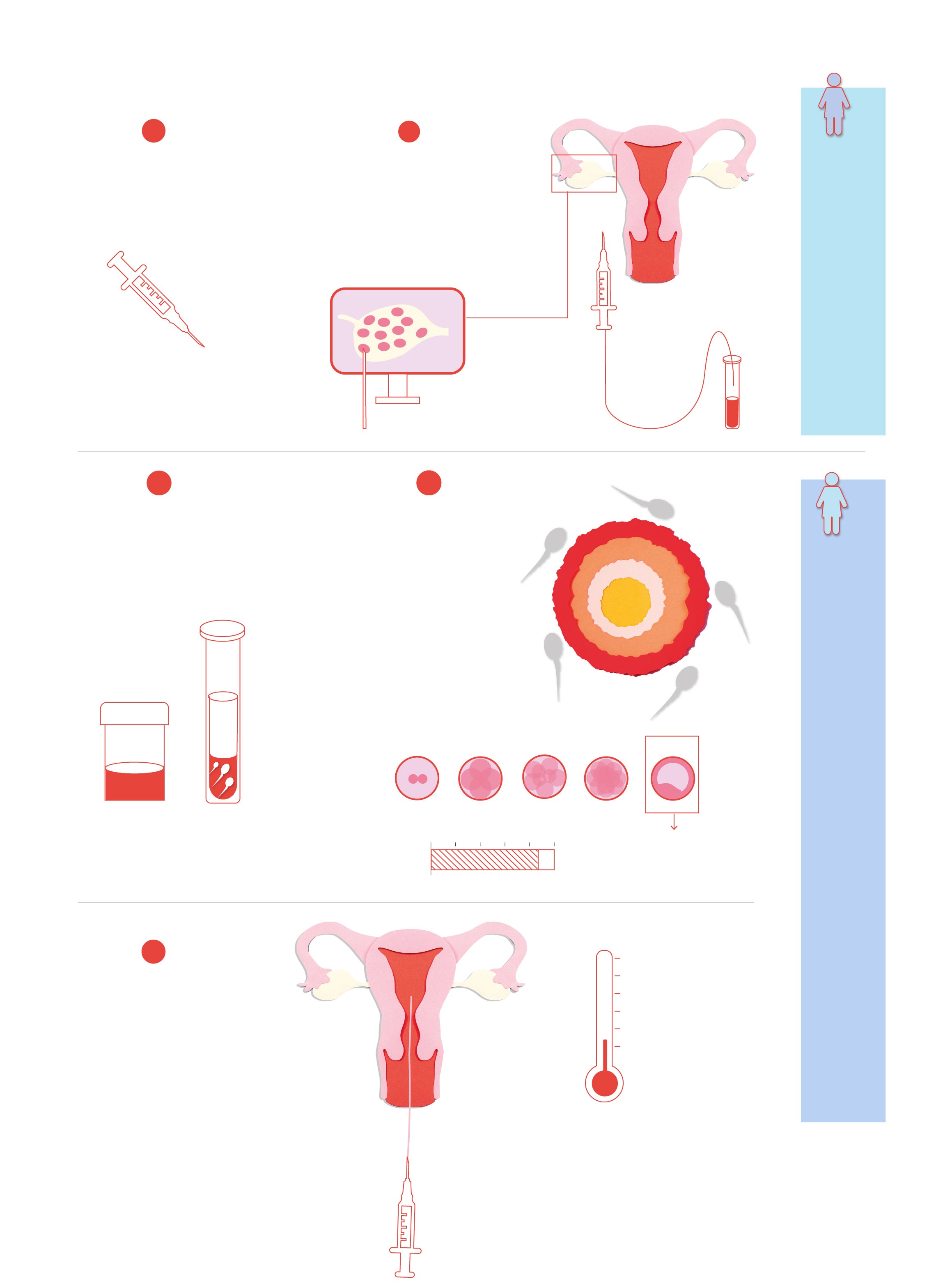 Cuando uno o dos folículos ováricos tienen unos 18 mm de diámetro se administra una inyección de hormonas a la paciente.