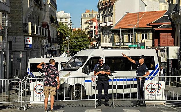 Este domingo las plataformas organizadoras, 'G7EZ' y 'Alternatives G7', han convocado en la plaza Chambre d'Amour de la localidad francesa de Anglet, a las 12.00 horas, un acto «simbólico y pacífico» para expresar su rechazo a la cumbre del G-7. Las concentraciones que, en un principio, tenían previstas este domingo en pueblos y ciudades vascas se han suspendido al no poder «garantizar la seguridad» de los participantes en los actos de protesta.
