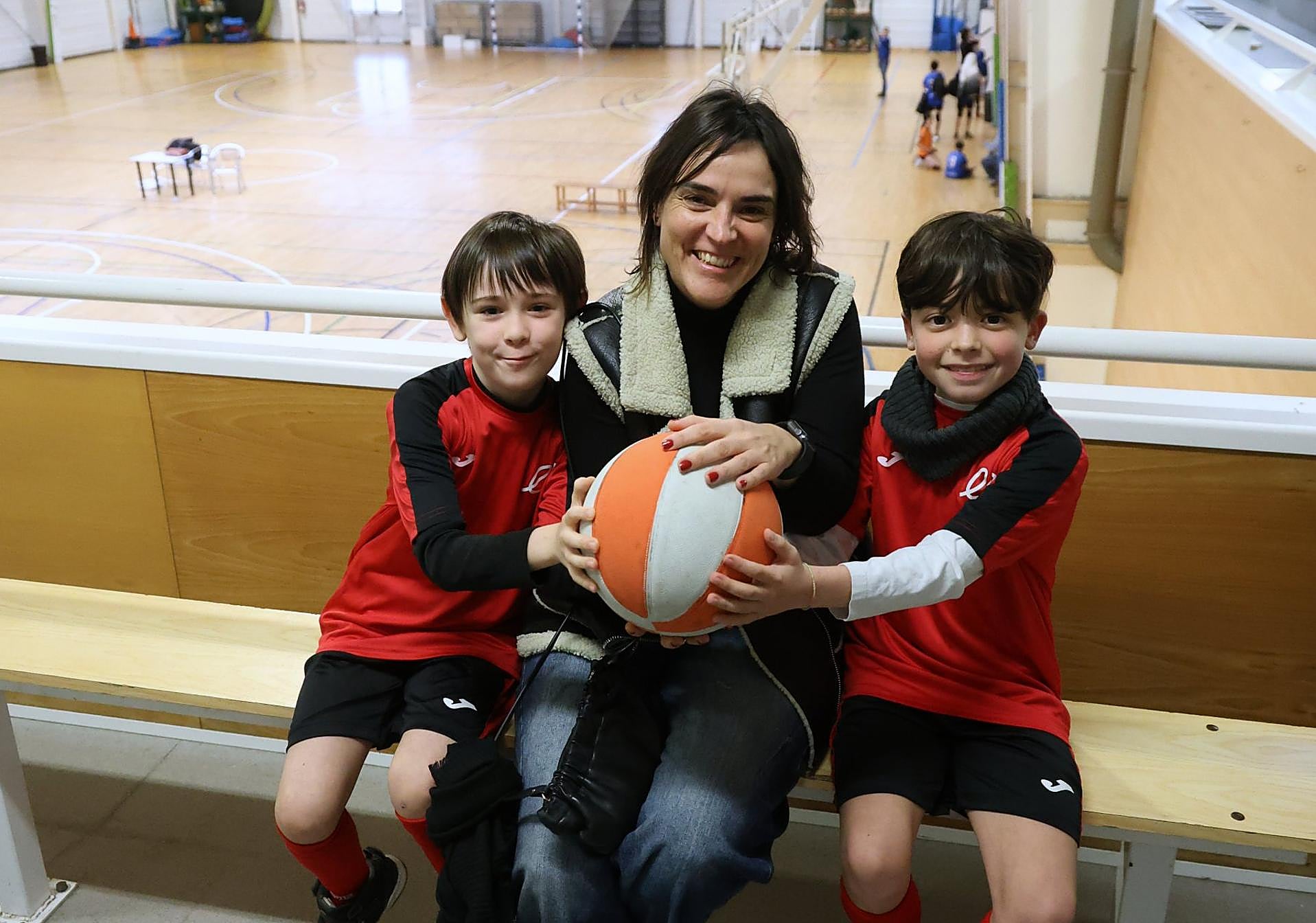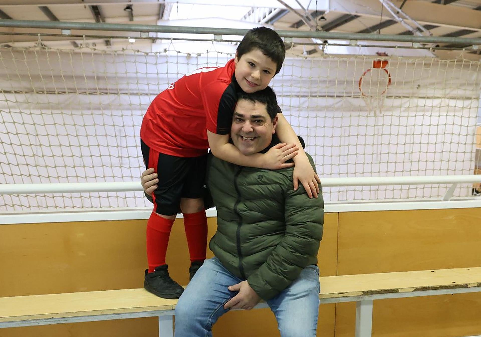 Cristian Campos acude con su hijo menor Cristopher a ver el partido de Cristian Rubén Jr, su hijo mayor. «Tengo dos hijos y los fines de semana tenemos que organizarlo todo, es complicado. Nos levantamos prontito y vamos a donde nos toque, casi siempre suele ser en la zona de Donostia. A mí me encanta venir, los padres también nos divertimos muchísimo viéndoles jugar». En el caso de los Campos, el deporte por excelencia es el judo. «Tanto yo como mis hijos lo practicamos».