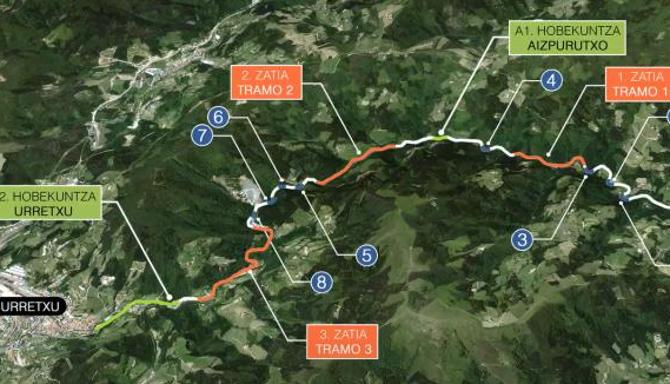 El tramo que se licita ahora y cuyas obras comenzarán en verano del próximo año es el 2, centrado en el trayecto Azkoitia-Urretxu y la travesía de Aizpurutxo. El presupuesto de esta actuación es de 9,4 millones, dentro de un proyecto total que prevé inversiones de 45,5 millones. La razón de realizar esta actuación por tramos es que hay que llevarla a cabo con la carretera abierta, siendo una vía con mucho tráfico, con más de 3.300 vehículos diarios, el 10% de ellos pesados.