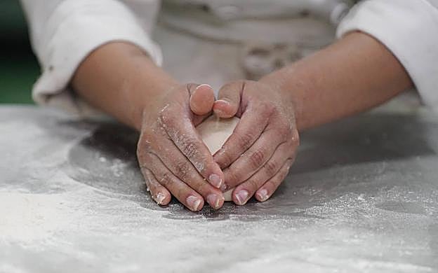 Sacar la masa y quitarle el gas de la primera fermentación aplastándola.