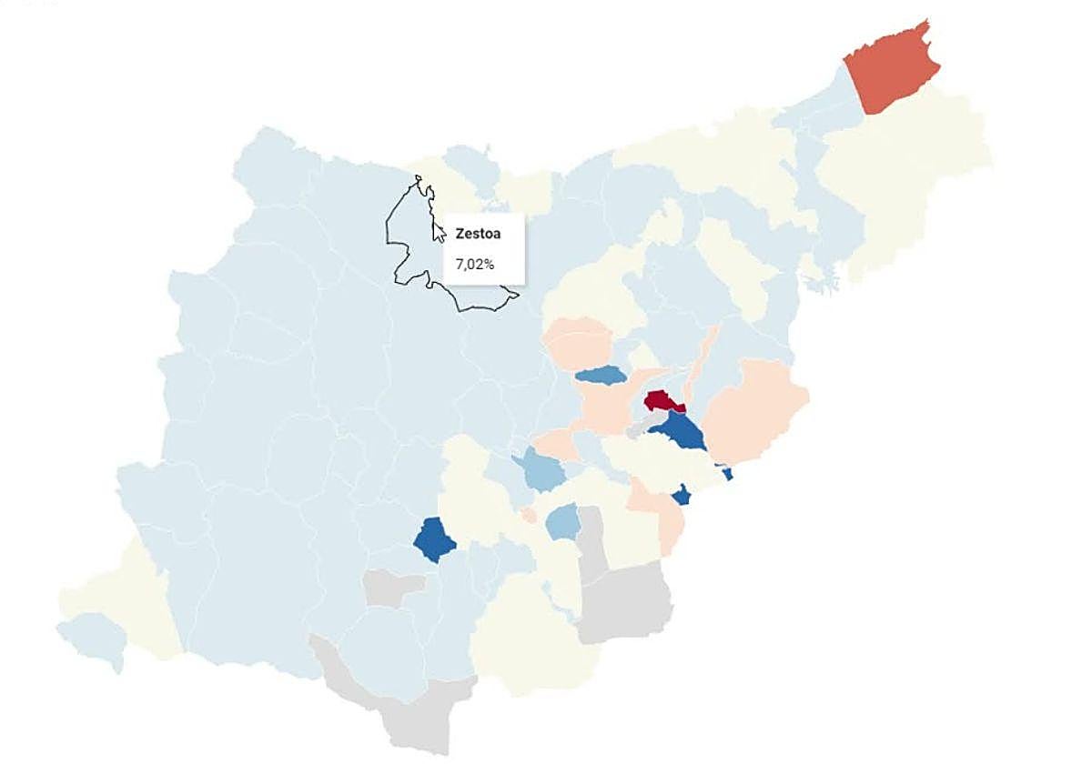 Uno de los aspectos más positivos es que desde 2022 ningún municipio del territorio registra una media inferior a los 20.000 euros, algo que no pueden afirmar ni Álava ni Bizkaia. Y la capital, San Sebastián, supera los 31.000 euros de renta media, aunque en 2023 apenas repuntó un 1%. Solo cuatro localidades, Orendain, Ormaiztegi, Gaintza e Idiazabal mejoran la renta media de Donostia.