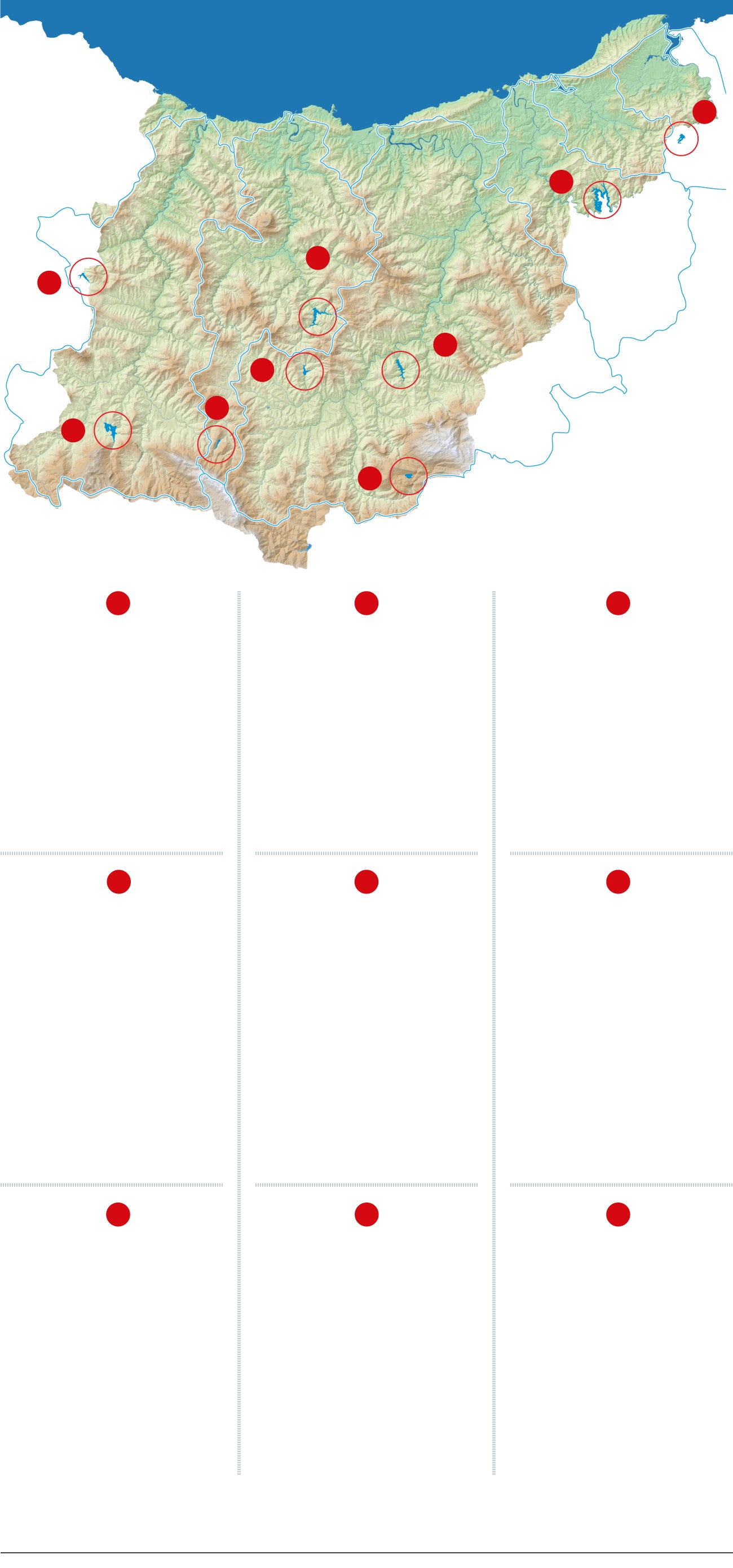 Según los indicadores establecidos por la Agencia Vasca del Agua en el plan especial de sequías de las cuencas internas del País Vasco, dos embalses están en estado de emergencia: el de Lareo, en Ataun, al 74,66% de llenado actual; y el de Urkulu, en Aretxabaleta, al 66,90%. El de Urkulu, el que acompaña en las fotografías de estas páginas, es el que más vacío está respecto a su capacidad total.